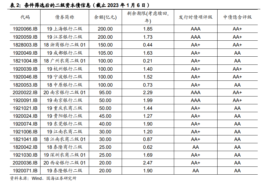 为了筛选兼具安全性与收益性的二级资本债,我们设定以下四个条件: