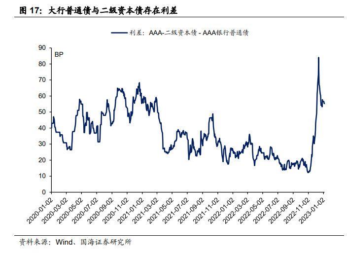 一方面,根据我们在2023年1月2日报告《2023年社融展望》中的测算,受企业去库降低短贷需求,以及票据冲量规模下降的影响,2023年信贷增速较难超预期。全年来看,商业银行二级资本债融资需求可能并不高。
