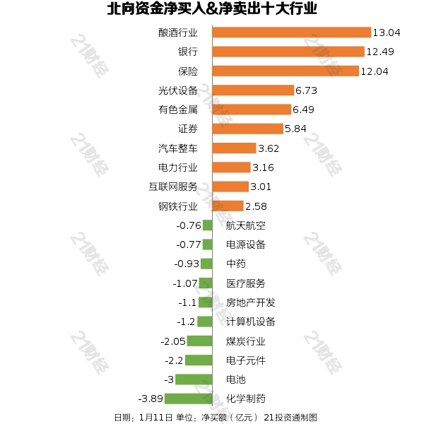 据21投资通智能监测,1月11日,北向资金净买入76.14亿元,其中沪股通净买入48.23亿元,深股通净买入27.91亿元。