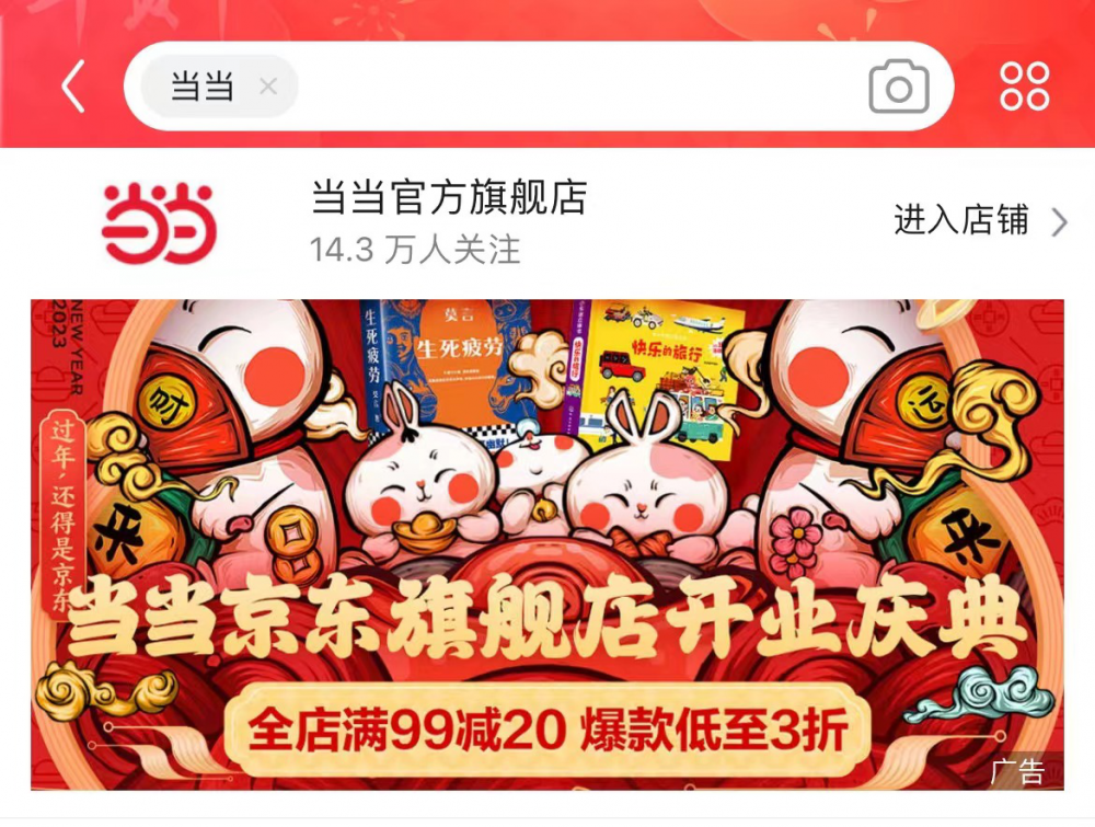 记者注意到,京东“当当旗舰店”开业第一天,店铺粉丝飚至14.5万。截至发稿,粉丝数回落至14.2万。