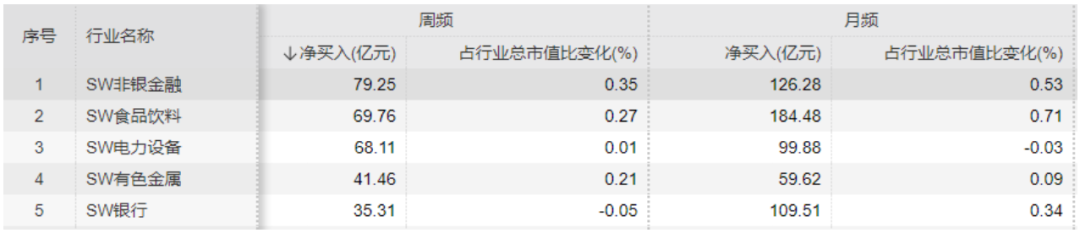 本周北上资金合计净买入440亿元,为历史第三大周净买入,这也是北上资金近期连续第十周加仓A股。今年以来,北向资金合计净买入640.15亿元,2022年全年净流入额才是900.20亿元。本周北向买入比较多的也集中在大金融、食品饮料、电力设备、有色等行业。