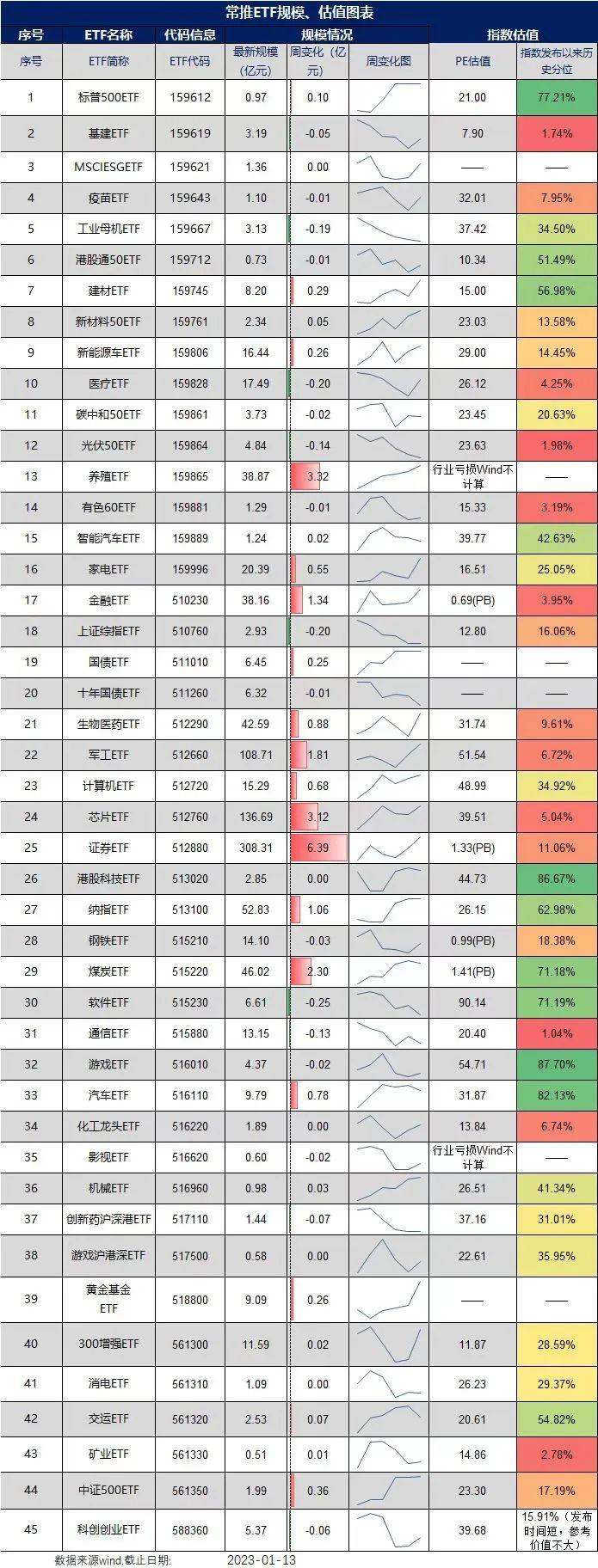 2、不论是从去年11月指数见底,还是今年年初以来,金融板块一直是北向资金加仓的主要方向。2022年疫情和地产是压制银行估值的主要因素,今年都会有明显改善。A股顺利迎来开门红后,市场情绪逐步回暖,成交额相较此前低点明显回升,2023年证券公司几项业务都有望迎来改善。当前金融板块的估值也比较低,在北向资金持续看好的情况下,金融ETF(510230)、证券ETF(512880)仍然可以关注。