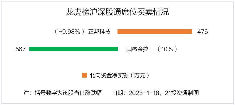 1月18日,北向资金参与龙虎榜中的个股共有2只,合计净卖出90.61万元。其中,深股通净买入1股,净卖出1股。