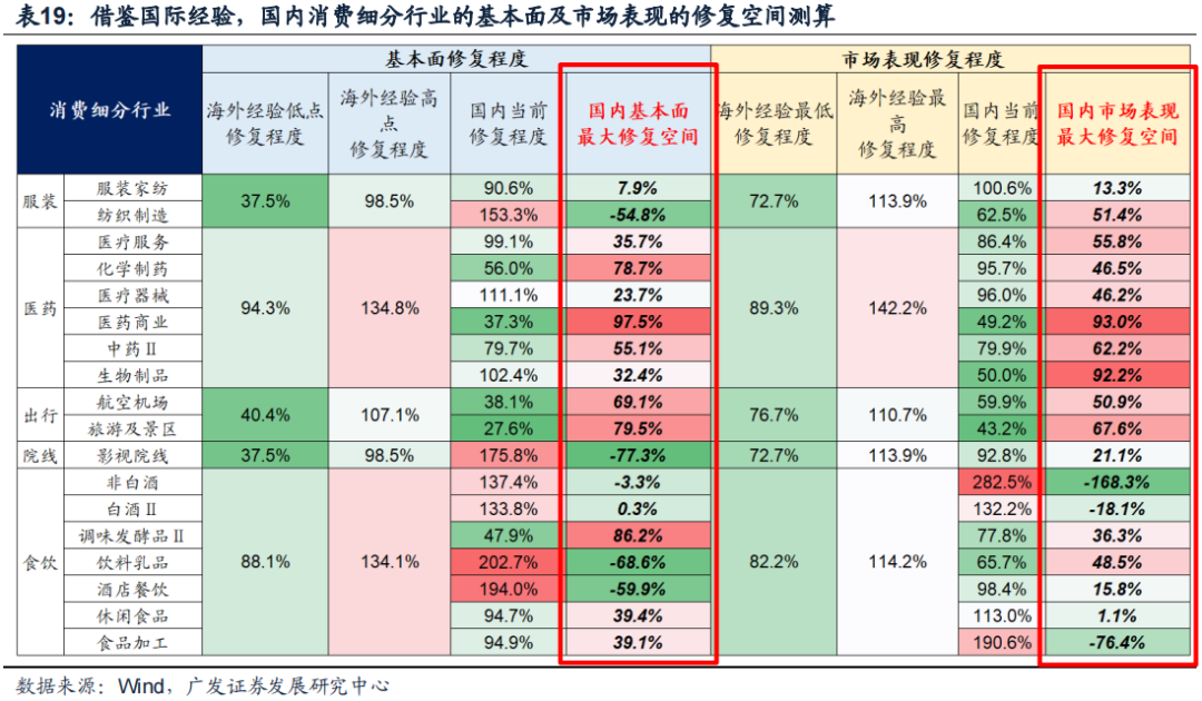 2修复空间:食品饮料/医药/休闲服务细分行业基本面和市场表现均有上升空间