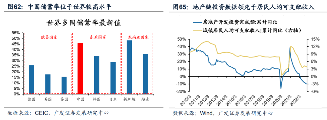 地产链政策助力释放超额储蓄提振消费。中国储蓄率位于世界较高水平,防疫优化后超额储蓄有待释放助力消费增长,地产链“稳增长”+“扩内需”政策的出台有望修复中国居民消费意愿。