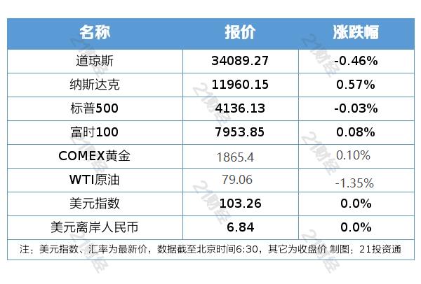 纽约股市三大股指14日涨跌不一。截至当天收盘,道琼斯工业平均指数比前一交易日下跌156.66点,收于34089.27点,跌幅为0.46%;标准普尔500种股票指数下跌1.16点,收于4136.13点,跌幅为0.03%;纳斯达克综合指数上涨68.36点,收于11960.15点,涨幅为0.57%。