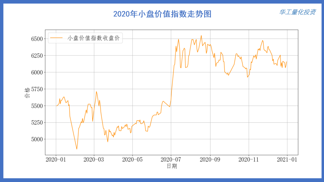 由下图2020年小盘价值指数收盘价走势图可以发现,在这一年间,小盘价值指数是上涨的,因此金元顺安元启灵活配置混合型证券投资基金得到了50.21%的年回报率,大成景恒混合型证券投资基金得到了22.19%的年回报率,通过保持小盘价值风格的一致性,这两只基金在2020年都获得了不错的投资回报。
