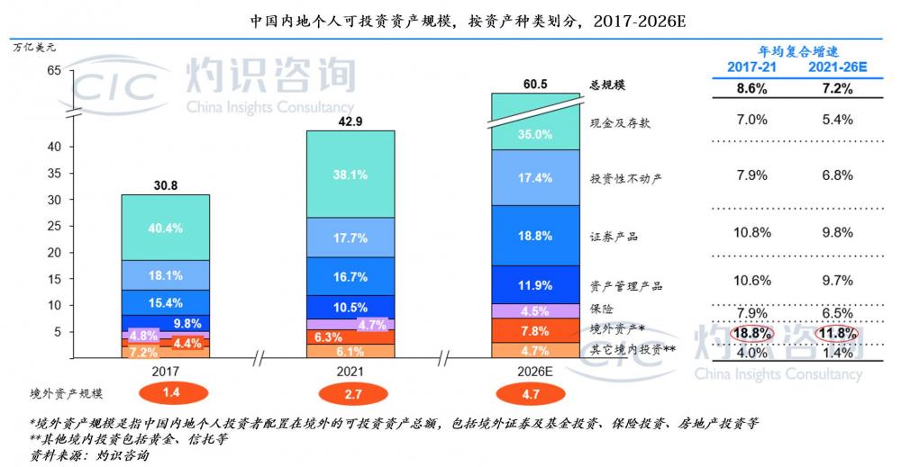 内地人均金融财富规模增速领跑全球,境外资产配置比例有待提升