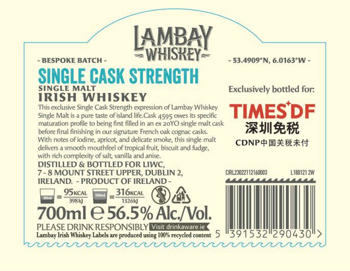 近日,深免海口观澜湖免税城推出了卡慕蓝嵌桶强威士忌定制版,这款桶号4595的蓝嵌威士忌是卡慕为深圳免税独家定制,全球仅此单桶,限量发售414瓶臻品,每瓶均有独立编号及典雅木盒包装,酒标标注“深圳免税”独家定制。