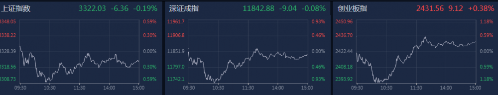 截至收盘,沪指跌0.19%,深成指跌0.08%,创业板指涨0.38%。