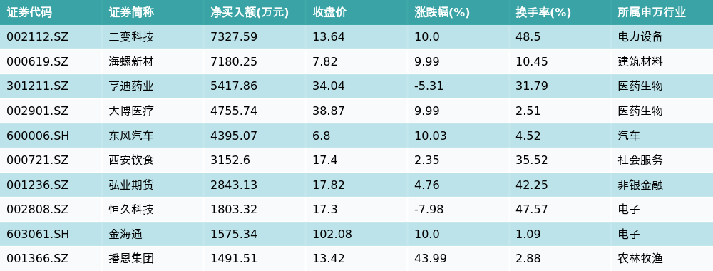 3月7日龙虎榜营业部净买入额前10详情见下表: