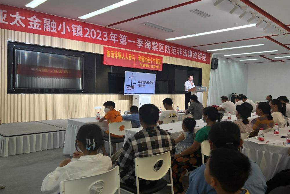 2月份平安银行三亚分行联合亚太金融小镇分别开展了主题为“防范诈骗人人参与,和谐社会个个受益”与“防范打击电信诈骗,保护个人财产安全”两场“银企同心 携手履行社会责任”的金融知识宣传活动。