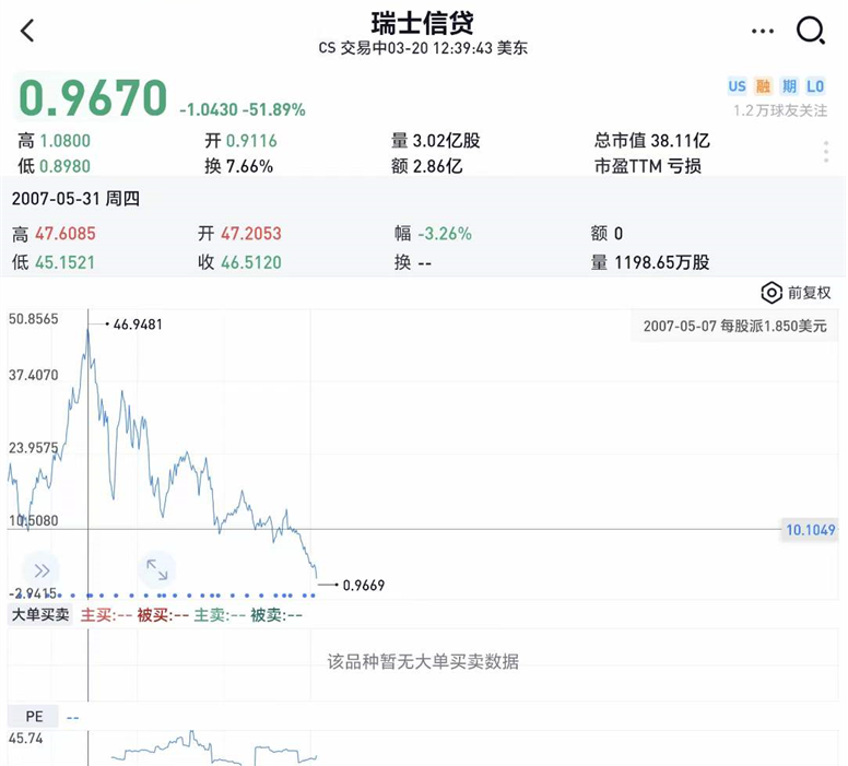 瑞士当地时间2023年3月19日晚上,瑞士政府宣布,瑞银将以30亿瑞士法郎收购瑞信。按照瑞银公布的全股份收购方案,瑞信股东每持有22.48股瑞信股份将获得1股瑞银股份,相当于每股0.76瑞士法郎,总对价30亿瑞士法郎(约合32.5亿美元),交易预计2023年底前完成。