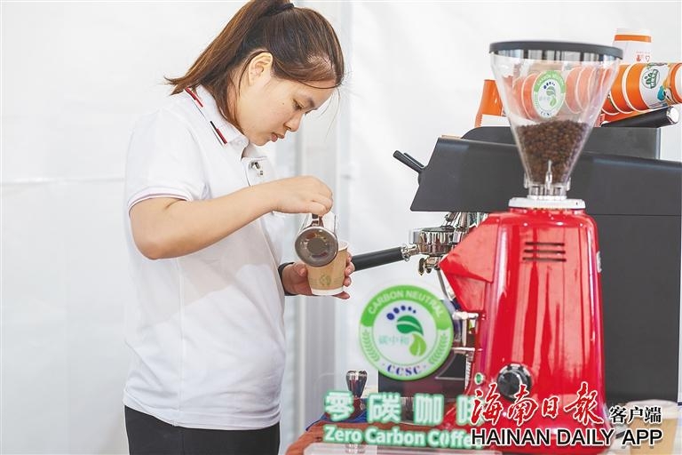 (博鳌亚洲论坛新闻中心,工作人员在制作“零碳咖啡”。)