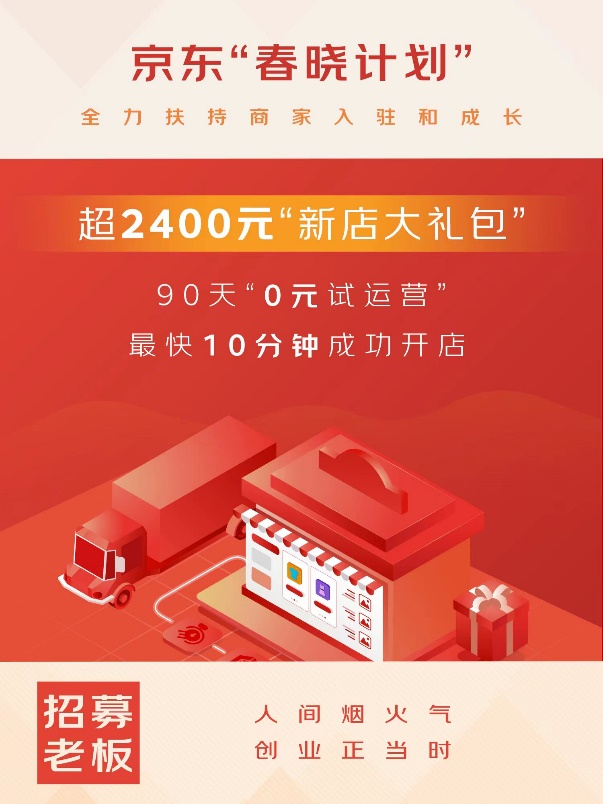 为帮助新商家快速度过“冷启动期”,京东“春晓计划”还推出超2400元“新店大礼包”、5000元新商家广告金奖励等扶持举措;同时,开设企业店铺的新商家还可在京东服务市场领取“0元入驻大礼包”,包含商品管理、订单履约、营销推广等运营工具。