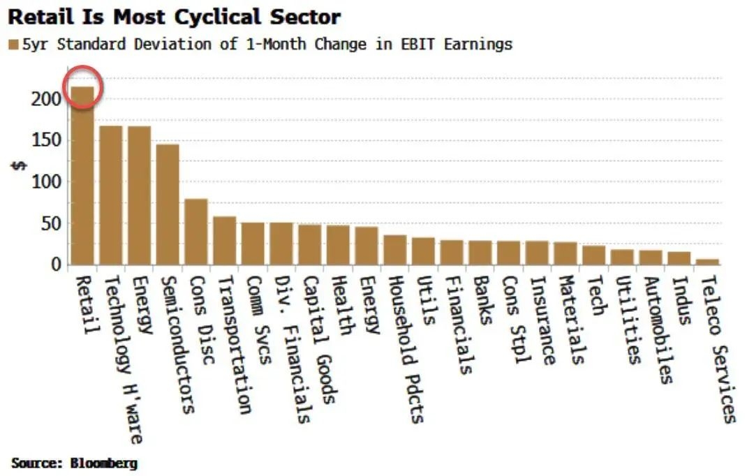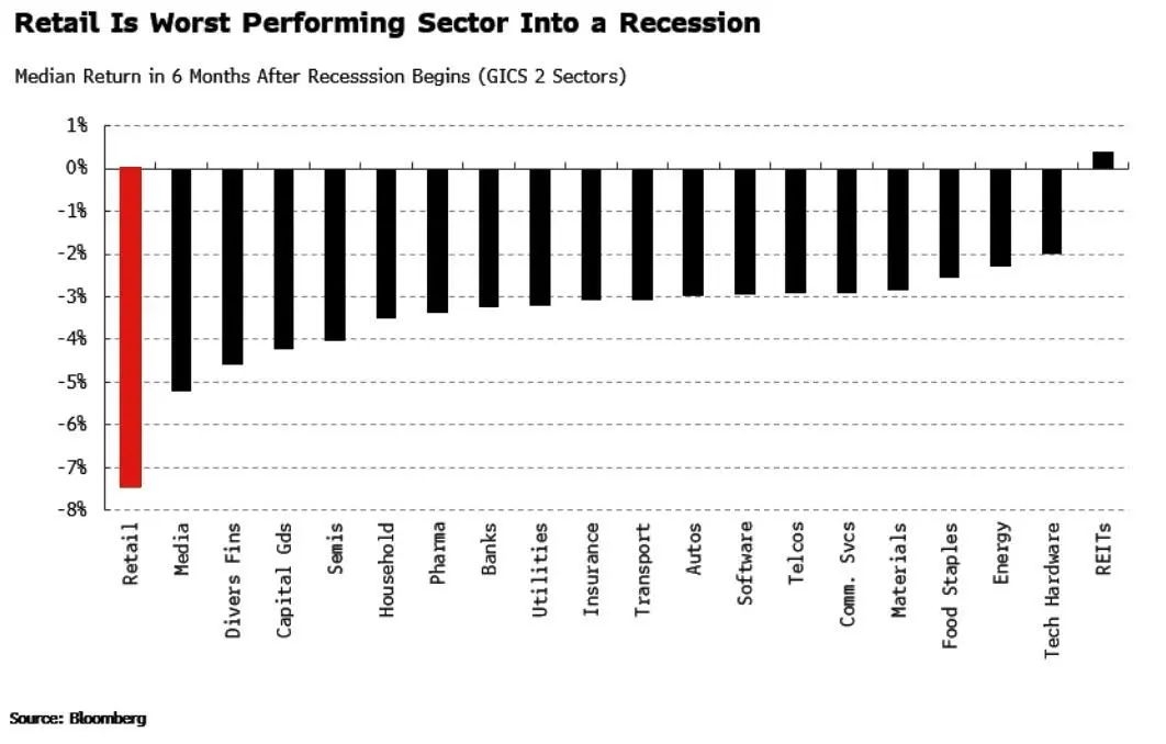 而可以肯定的是,在任何一次衰退中,零售业都注定是表现最不佳的行业之一。
