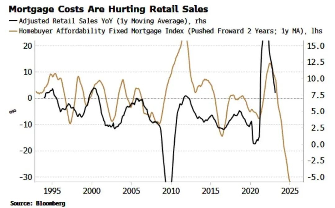 长期来看,或者说从今年剩余时间到明年,由于能源和抵押贷款等基本生活成本持续上涨,美国人可自由支配的支出将继续受到影响。购房者负担能力的急剧下降对零售业来说是个坏兆头。