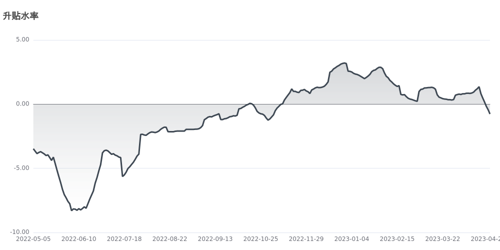今日该指标值为-0.77%,目前该指标处于近一年中立区间,说明投资者对A股持中立情绪。反映期货市场投资者对市场的看法,该指标越高说明投资者认为当前市场较强,越低则说明认为市场相对较弱,因而与上证指数正相关。