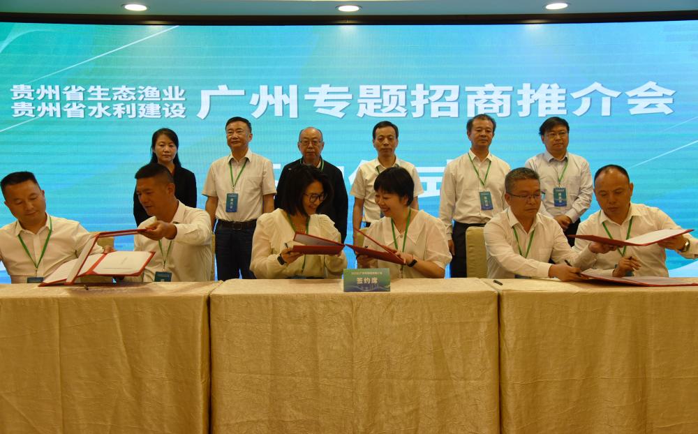 5月9日,2023年贵州生态渔业水利建设广州专题招商活动在广东迎宾馆举行。活动吸引了超过50家涉渔商协、水利优强企业参加,正安县、铜仁水务集团、海南可生元科技发展有限公司、广州以渔兴农渔业有限公司等18家企地单位现场签约生态渔业项目12个总金额10亿余元,签约水利建设战略合作协议2个。