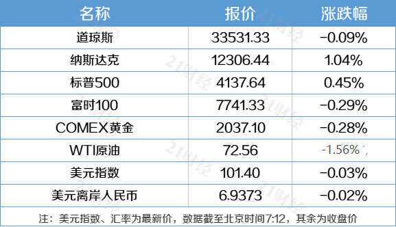 纽约股市三大股指10日涨跌不一。截至当天收盘,道琼斯工业平均指数比前一交易日下跌30.48点,收于33531.33点,跌幅为0.09%;标准普尔500种股票指数上涨18.47点,收于4137.64点,涨幅为0.45%;纳斯达克综合指数上涨126.89点,收于12306.44点,涨幅为1.04%。