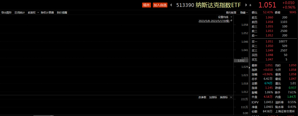 截至午盘,纳斯达克指数ETF(513390)涨近1%,溢价率达0.55%。