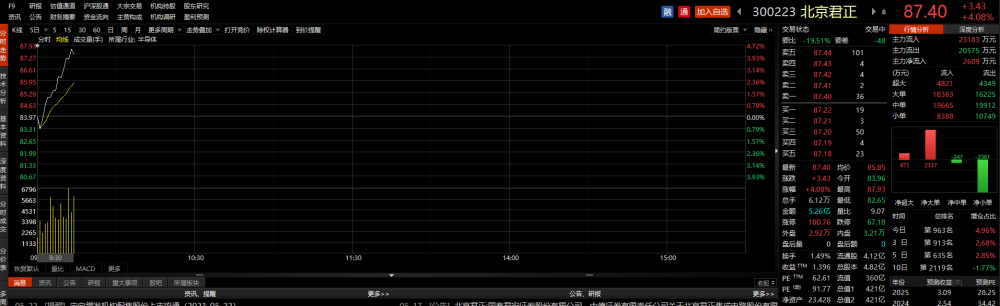 芯片板块近期持续反弹,北京君正早盘震荡走高,截至发稿,涨幅超4%。此外,芯片板块其他成份股中,兆易创新涨逾3%,韦尔股份、景嘉微、北方华创等多股涨超2%。
