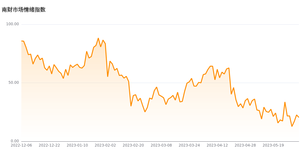 今日南财市场情绪指数为20.4,较前一交易日22.6下跌,市场投资热度降低。
