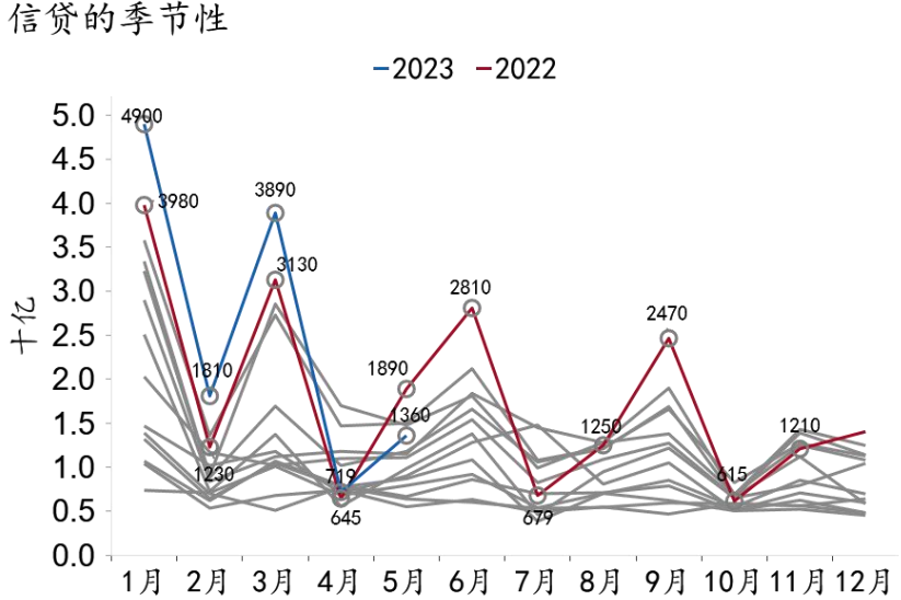 图1:5月信贷较近五年平均水平下降800亿