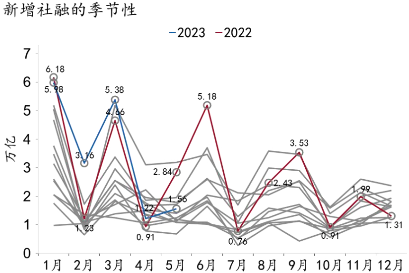 图5:5月新增社融低于预期
