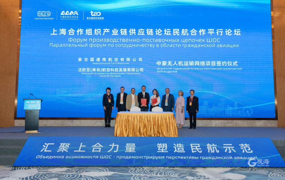 论坛期间,蒙古国通格航空有限公司与泛欧亚(青岛)航空科技发展有限公司签约中蒙无人机运输网络项目,塔吉克斯坦共和国最高检察院、青岛云世纪信息科技有限公司、北京世纪翔云航空有限公司进行了战略合作签约。