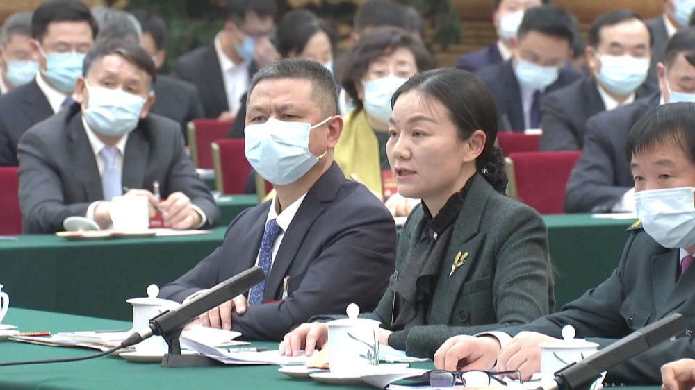 △魏巧在十四届全国人大一次会议江苏省代表团全体会议上发言。