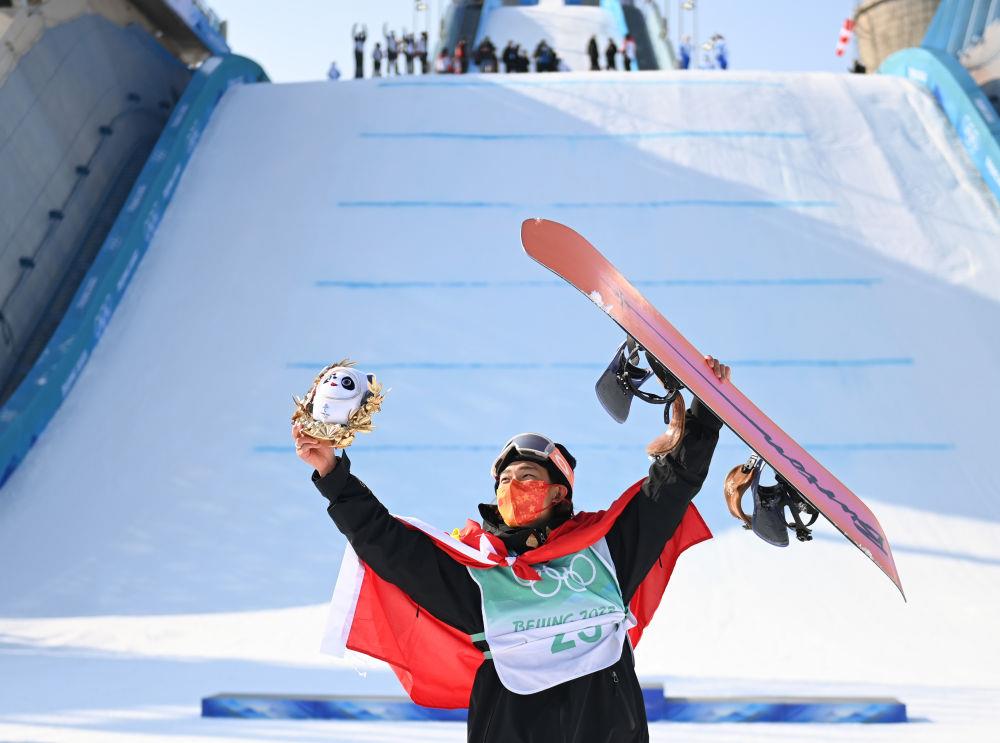 △2022年2月15日,中国队选手苏翊鸣获得北京冬奥会单板滑雪男子大跳台冠军。