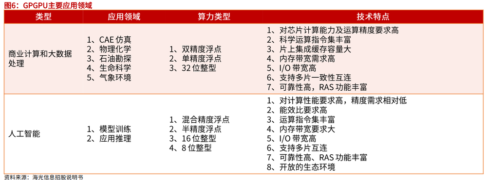 现阶段,GPU行业逐渐分化为传统GPU和GPGPU两个细分市场,前者延续专门用于图形图像处理用途,内置了视频编解码加速引擎、2D 加速引擎、3D 加速引擎、图像渲染等专用运算模块。