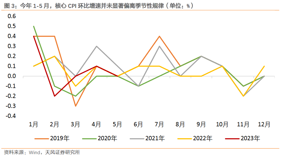 但实际情况是,今年以来核心 CPI 虽然偏弱,但环比增速并未显著偏离季节性;PPI 下探的压力较大,但环比增速并未突破历史下限;青年失业率虽然持续提升,但整体城镇调查失业率持续回落,25-59 岁城镇失业率甚至已经低于疫情前 2019 年的同期水平,创下有数据以来的新低。