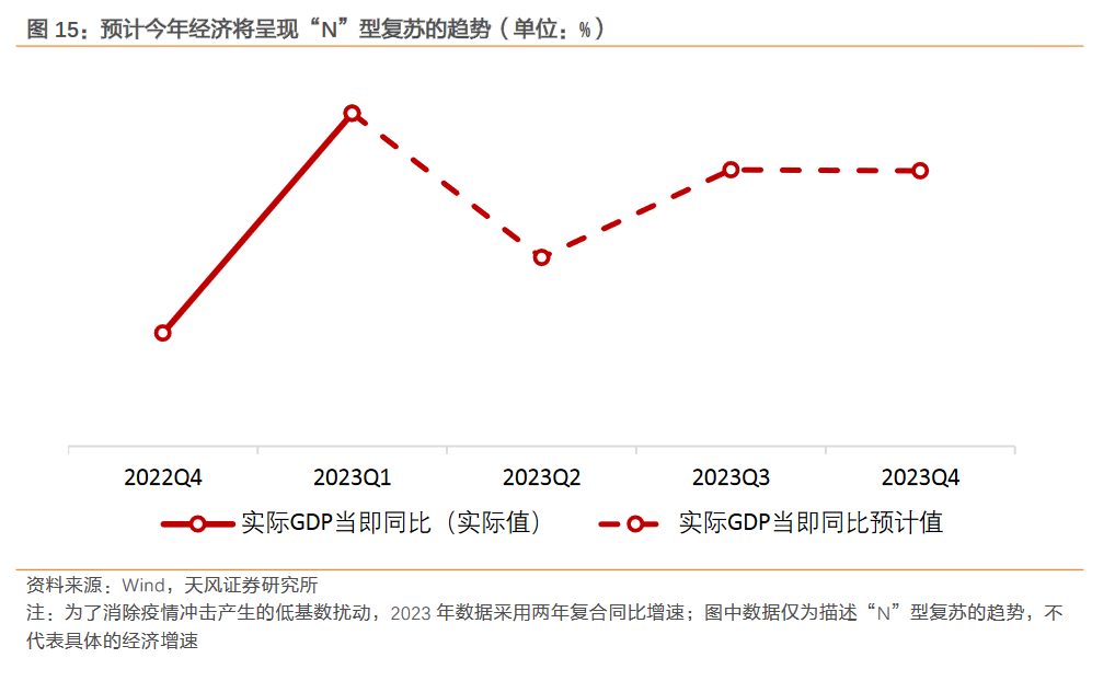 因此即使没有政策的推动,今年三四季度经济复苏的内生动能可能也会开始边际走强,而不是继续回落。我们预计,二季度大概率是今年经济复苏动能的环比低点,在透支效应衰退、内生增长动能修复、库存周期见底的共同作用下,三四季度经济或将环比改善,进入“N 字形”复苏的第三阶段。