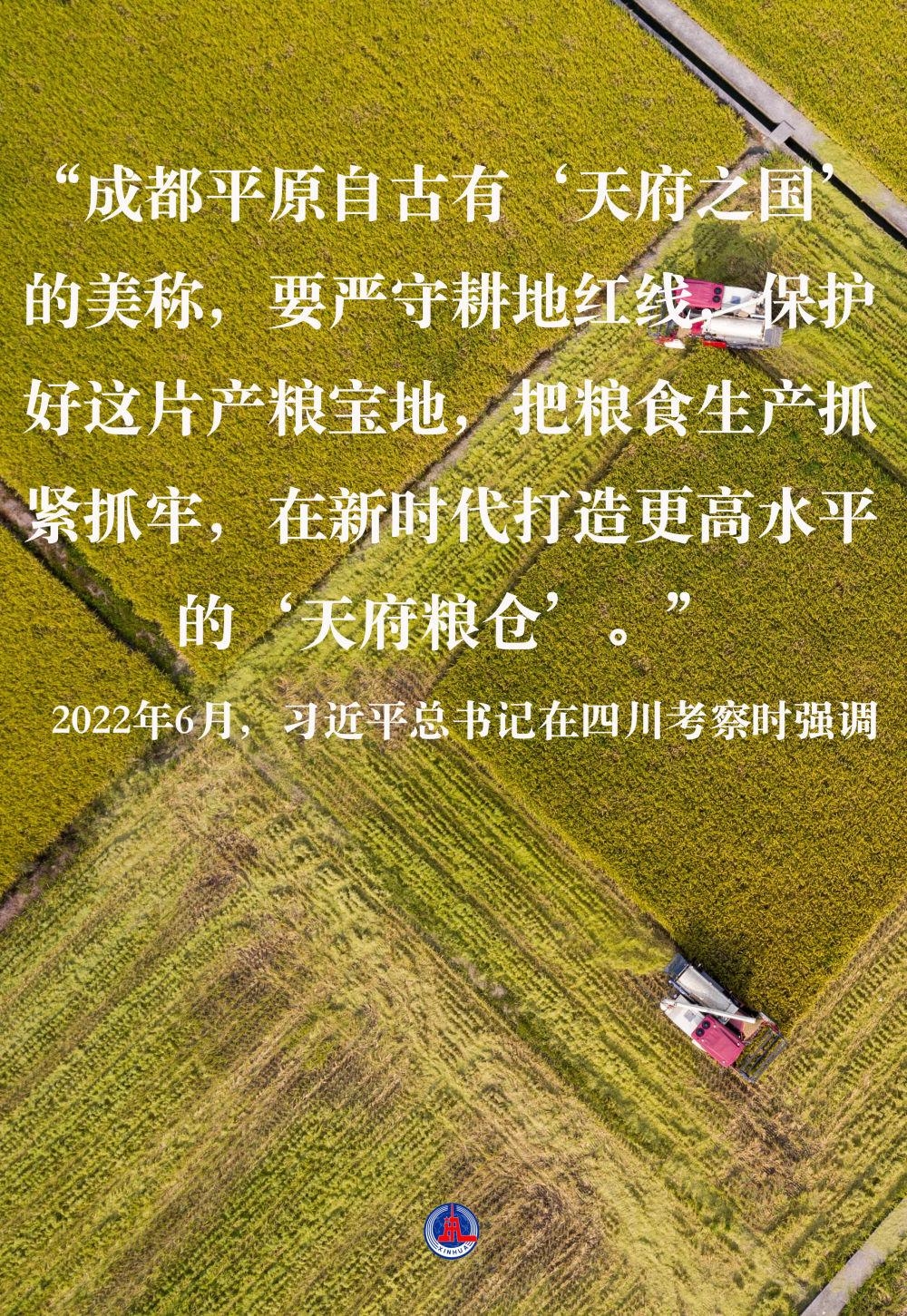 2022年6月,习近平总书记在四川考察时强调,“成都平原自古有‘天府之国’的美称,要严守耕地红线,保护好这片产粮宝地,把粮食生产抓紧抓牢,在新时代打造更高水平的‘天府粮仓’”。
