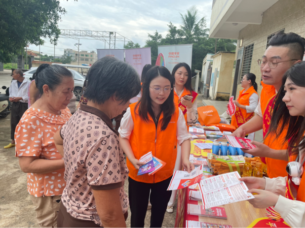 活动现场,平安银行海口分行金融志愿者身披绶带,通过悬挂横幅、陈列易拉宝、分发宣传资料、面对面讲解、有奖知识问答等多种方式向当地村民群众普及个信保护、征信知识、存款保险、防范非法集资、防范电信网络诈骗等金融知识和金融风险防范知识,把金融知识送到老百姓身边。为了提高村民的积极性,活动同时了解了老百姓的金融需求,征集意见,请村民们就如何提升金融宣教工作建言献策。