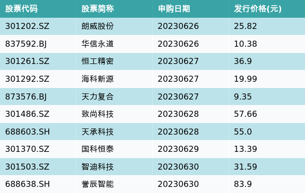 上周有10只新股发行,详情见下表: