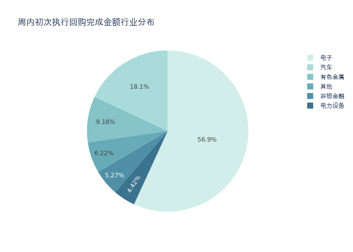 按照初次执行金额所在不同行业分布,金额最高的3个行业分别为:电子、汽车、有色金属,详情见下图: