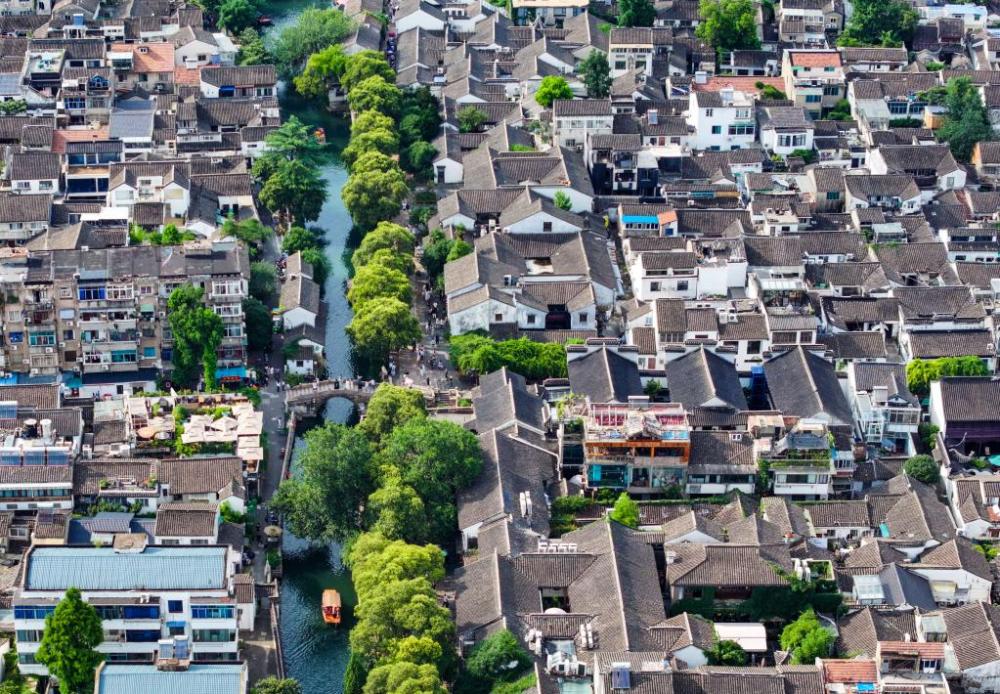 7月3日拍摄的苏州平江历史文化街区(无人机照片)。新华社记者李博摄