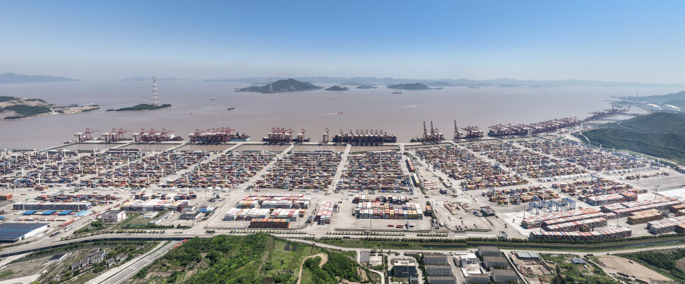 鸟瞰宁波舟山港穿山港区(无人机照片,5月9日摄)。新华社记者翁忻旸摄