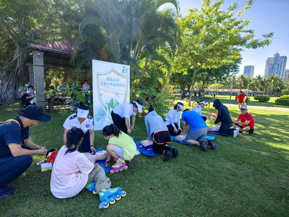 公益活动以跑步、健步走结合捡拾垃圾形式,倡导健康绿色、乐观积极的生活方式,发放保险知识宣传资料,向市民游客讲解如何防范非法集资,普及金融保险知识、安全生产知识等;活动现场各保险机构以唱红歌、快闪舞蹈及朗诵形式,生动展示阳光活力的行业风采,同时活动参与者还通过“78随心而动”微信小程序,量心率、测血氧,赢取爱心值进行捐赠,助力保险公益项目,活动现场海口市120急救志愿队平安分队向游客市民普及心肺复苏等急救知识。