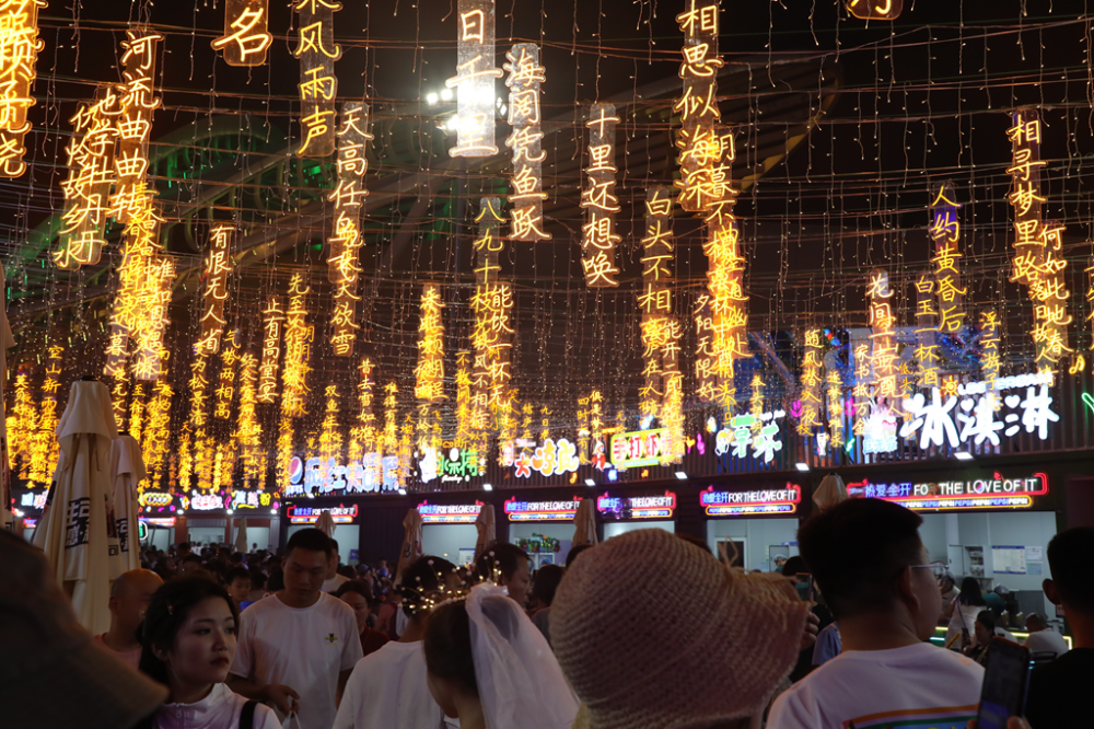在周年庆期间,凤凰之声大剧院以娱乐休闲、潮流艺术为核心,将户外南北广场打造成时尚主题街区,浓缩艺术、美食、露营、咖啡与美酒等元素,将文化创意、休闲体验及生活美学融入夜间消费新场景:充满街头文化与浪漫落日余晖的美式落日街区、同城热榜Top10的cherry bene咖啡、感受青岛式浪漫的风陵渡口咖啡馆、拉满夏夜狂欢氛围感的 The Beach House 沙滩酒吧、汇聚百色40+美好生活品牌的潮玩市集、汇聚全国各地美食的凤凰集装箱夜市、百事凤凰海鲜大排档、品牌网红美食66号海鲜音乐餐厅、街头牛排……充分迎合年轻人对调性、共悦、烟火气的向往,为市民游客带来更多“夏日”惊喜,引爆新一轮创新体验与社交高光话题,激发消费新活力。
