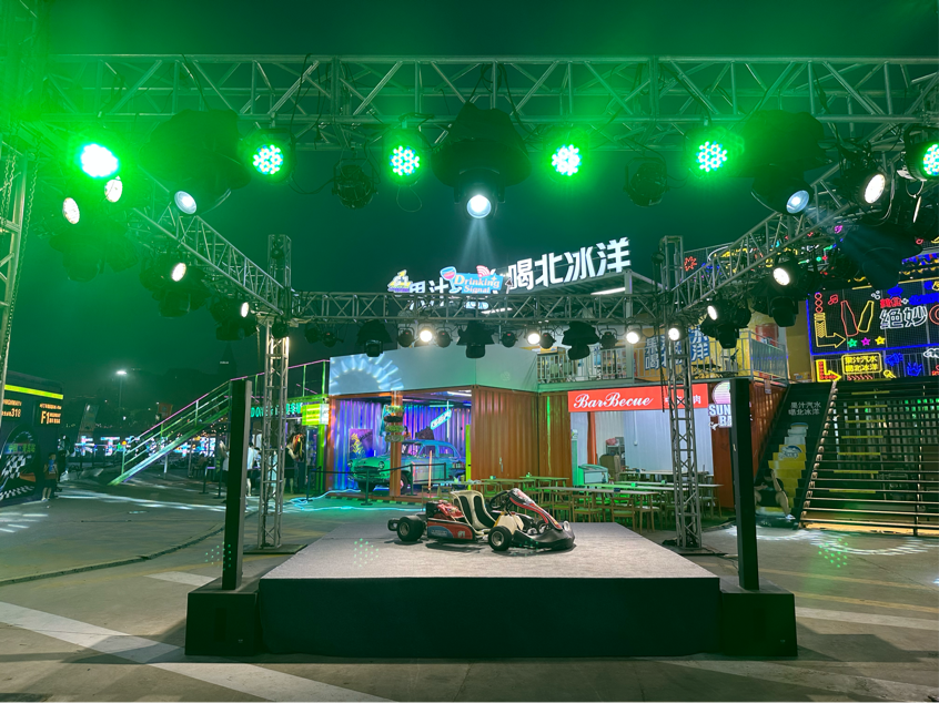 室外四舞台更是联动演绎,在喷泉中心舞台、沙滩舞台、集装箱露天舞台、美式落日街区舞台每天呈现多主题狂欢派对,PHX电音节、魔爪沙滩音乐派对、magic mike猛男秀、沙滩音乐会、集装箱Live现场等精彩演出惊喜不断。