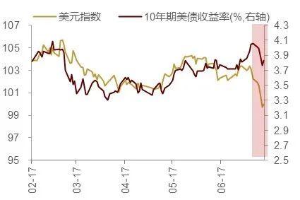▍图6:美国通胀降温,美元指数和美债利率快速下行