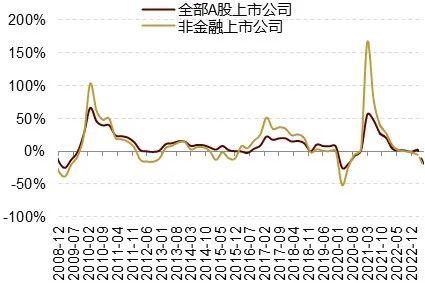 整体业绩增速预计触底改善。根据一致可比口径计算(即2023年中报盈利测算值的样本为目前已经公布盈利情况的上市公司),全部A股/非金融A股2023年中报净利润累计同比增速测算值为-19.4%/-22.4%(由于当前样本有限,可能与真实值存在较大偏差)。