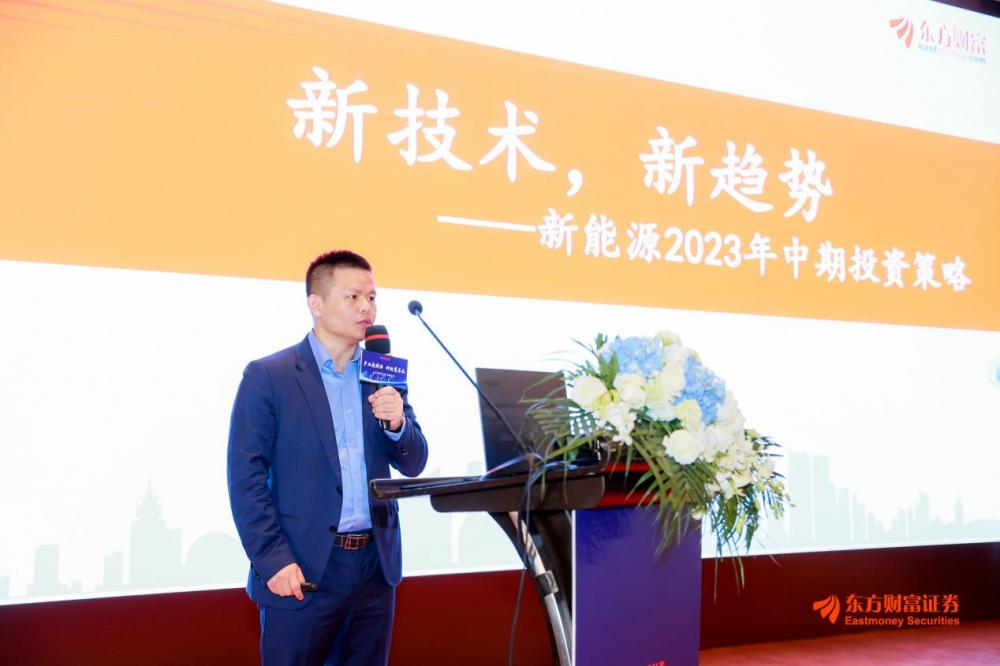东方财富证券研究所所长周旭辉先生就《新能源2023年中期策略:新技术,新趋势》进行了主题演讲,他认为,新能源行业整体供给瓶颈缓解,未来投资机会将更多聚焦在技术迭代的环节。电动车方面,渗透率快速提升后行业逐步迈入成熟期,产业链主要环节产能开始相对过剩,只有技术创新能够突围,复合铜箔和4680大概率将在今年获得突破,后续空间较大;光伏方面,硅料放量势不可挡,产业链供给瓶颈解除,装机增速再上台阶。光伏行业不断推陈出新,xBC和钙钛矿等新技术值得关注;储能方面,源于风光装机需求外溢,储能装机需求空间广阔,看好制造环节放量后有望受益且具备阶段性渠道壁垒的环节;氢能方面,绿电制氢正迎来从1到N的产业爆发阶段,绿电度电成本、电解槽单位电耗和设备投资的下降,驱动电解水制氢在能源化工等领域与灰氢平价。碱性电解槽作为核心制氢设备,将迎来千亿级市场需求。