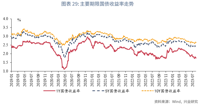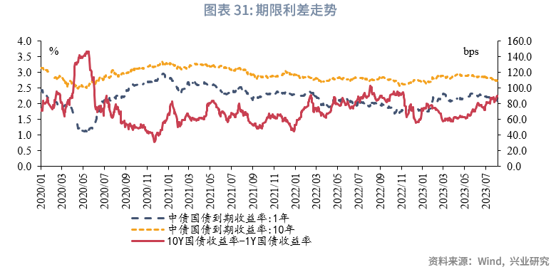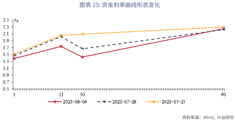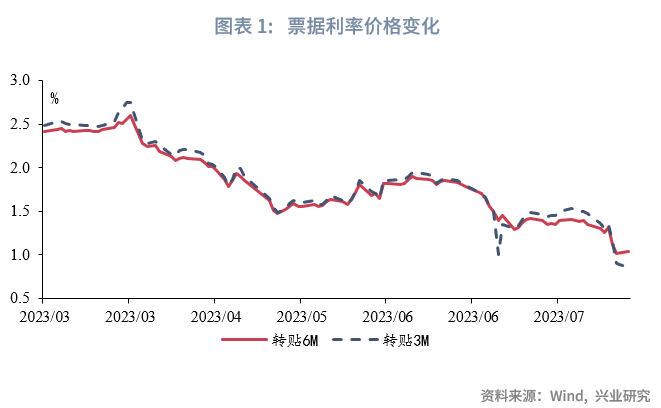 需要注意的是,进入2023年,随着票据资产期限的缩短,一度呈现短票收益率普遍高于长票的现象:这体现为1M收益率高于3M收益率,而3M收益率高于6M收益率。而从6月开始,曲线倒挂形态被修复,7月末,3M和6M价差为19BP。