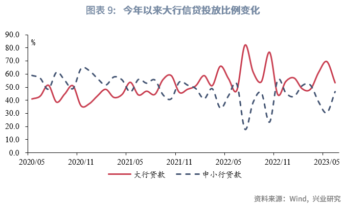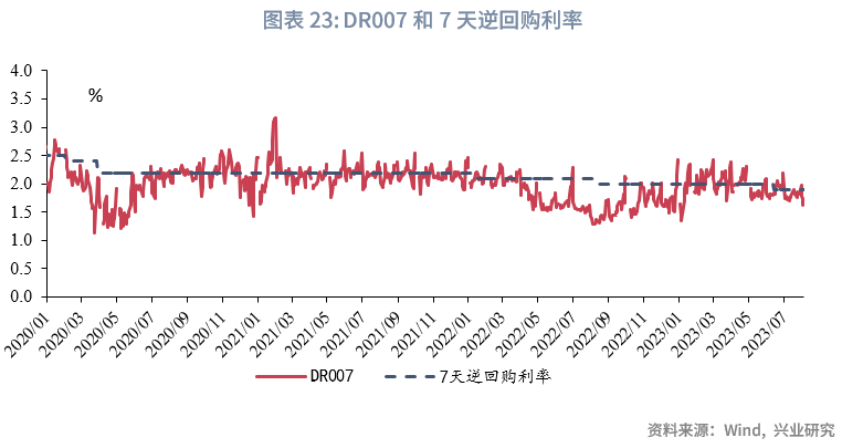 从信贷需求看,以挖掘机销量同比增速作为前瞻指标,截止2023年6月末,挖掘机销量同比增速小幅回落至-24.1%,仍处于盘底过程,这一定程度预示信贷需求仍处于修复期,出现明显改善仍需要一个过程。
