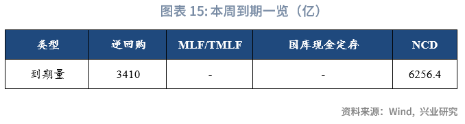 央行操作和流动性前瞻:本周逆回购到期3410亿元,NCD到期6256.4亿元。
